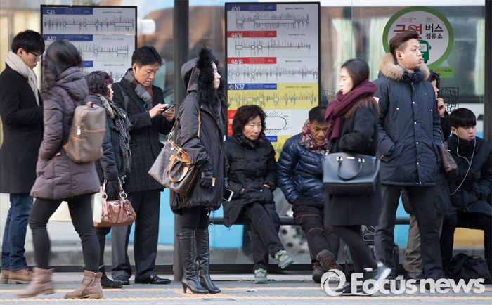 기상청 관계자는 “북서쪽에서 찬 공기가 유입되면서 기온이 낮아지겠고, 바람도 강하게 불어 체감온도는 더욱 낮아 춥겠으니 건강관리에 유의해야 한다”며 “해안을 중심으로 바람이 강하게 불고 내륙에도 약간 강하게 부는 곳이 있을 것으로 보여, 항해나 조업하는 선박은 유의해야 한다”고 당부했다.(서울=포커스뉴스) 서울 아침 최저기온이 영하5도 내려간 4일 오전 서울 강남구 강남역 인근 버스정류장에서 시민들이 버스를 기다리고 있다. 2015.12.04 허란 기자