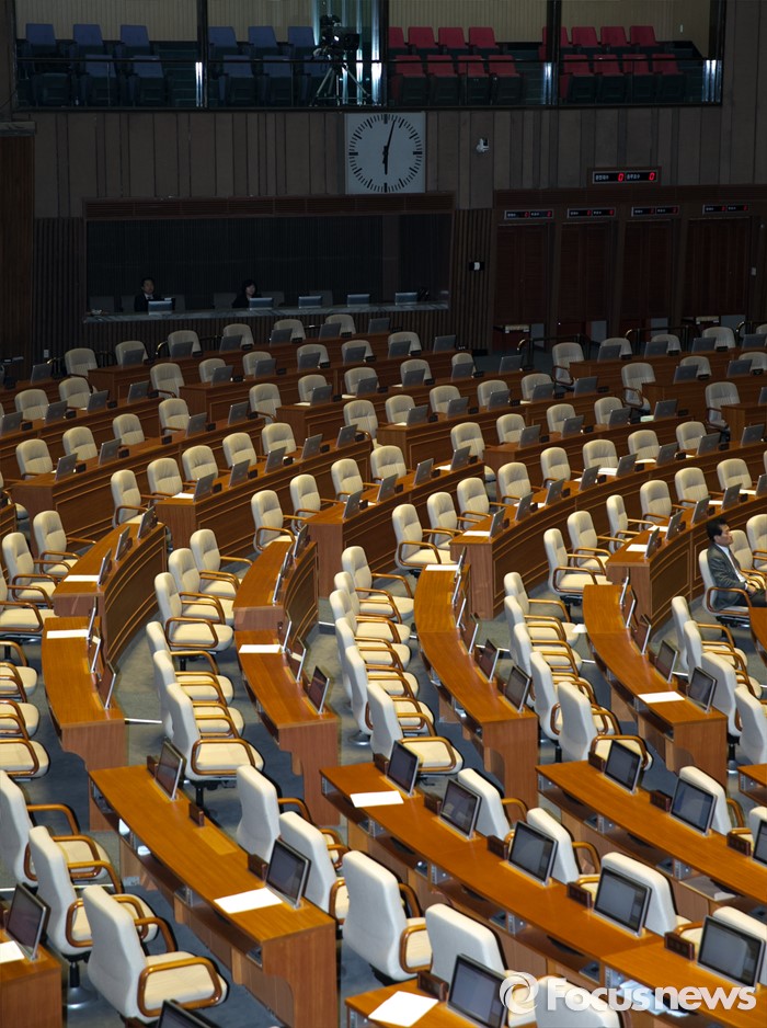 (서울=포커스뉴스) 테러방지법 직권상정에 반발해 야당이 무제한 토론(필리버스터)를 일주일째 진행하며 총 130시간을 돌파한 29일 오전 서울 여의도 국회 본회의장에서 의원들의 빈 자리가 보이고 있다.