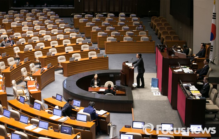 (서울=포커스뉴스) 테러방지법 직권상정에 반발해 야당이 무제한 토론(필리버스터)를 일주일째 진행하며 총 130시간을 돌파한 29일 오전 서울 여의도 국회 본회의장에서 토론에 참여한 홍종학 더불어민주당 의원이 발언하고 있다.