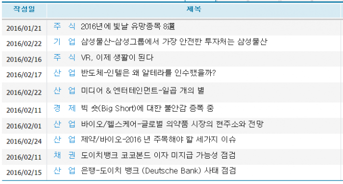 에프앤가이드에 따르면 지난 한 주간(2.21~28) 도이치뱅크의 코코본드와 공매도 등의 증시 불안감이 상당부분 가라앉으며 유망업종을 찾는 보고서에 투자자들이 주목했다. 특히 삼성 그룹 지배구조 변화와 반도체 산업, 중국 규제 우려가 나왔던 미디어·콘텐츠업종에 집중했다.