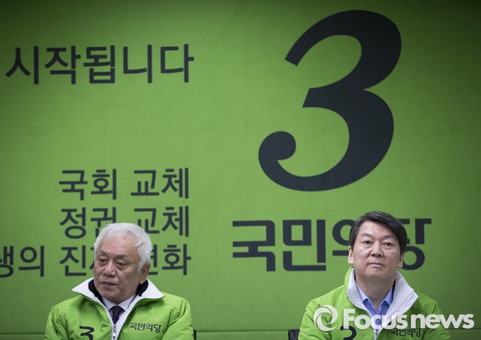 (서울=포커스뉴스) 국민의당 안철수(오른쪽) 상임공동대표와 김한길 상임공동선대위원장이 서울 마포구 국민의당 당사에서 열린 최고위원회의에 참석하고 있다.