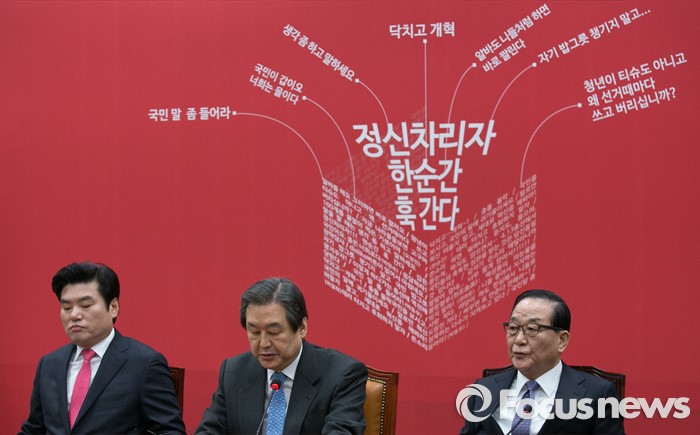 (서울=포커스뉴스) 김무성(가운데) 새누리당 대표가 29일 오전 서울 여의도 국회에서 열린 최고위원회의에 참석해 모두발언을 하고 있다.