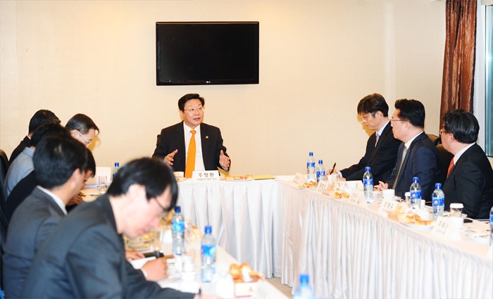| △ 이란 테헤란 지상사 간담회 주재하는 주형환 장관 |