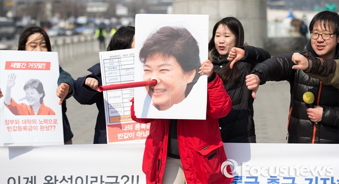 | △ '새빨간 거짓말, 박근혜 정부 반값등록금 촉구 퍼포먼스' |