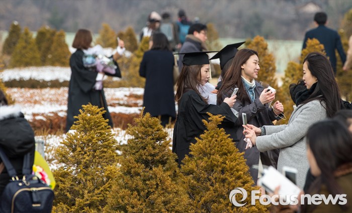 (서울=포커스뉴스) 29일 오후 서울 서대문구 이화여자대학교에서 열린 2015학년도 전기 학위수여식에 참석한 졸업생들이 기념촬영을 하고 있다.