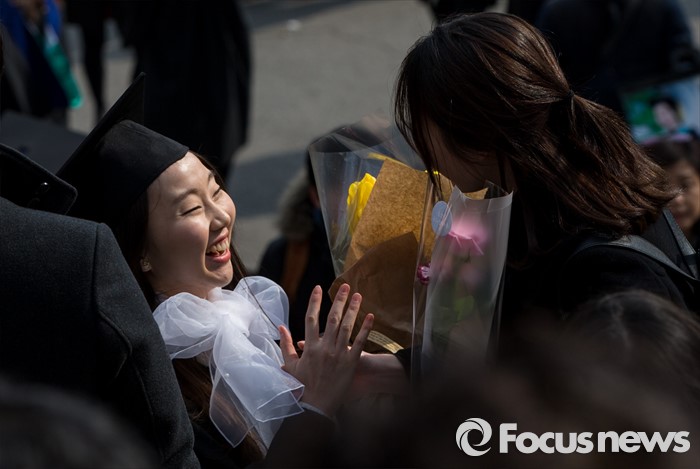 (서울=포커스뉴스) 29일 오후 서울 서대문구 이화여자대학교에서 열린 2015학년도 전기 학위수여식에 참석한 졸업생들이 밝게 웃고 있다.