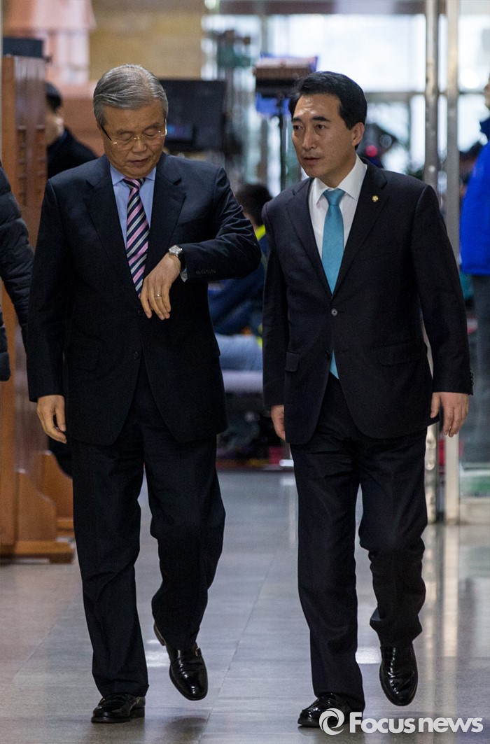 (서울=포커스뉴스) 김종인 더불어민주당 비상대책위원회 대표가 29일 오후 서울 영등포구 국회에서 열린 '당무위원회의'에 참석하고 있다. 사진 오른쪽은 박수현 대표비서실장.