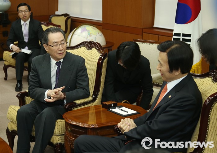 (서울=포커스뉴스) 29일 오후 서울 종로구 세종로 외교부청사에서 윤병세 외교부 장관과 우다웨이 북핵6자회담 중국 측 수석대표가 이야기를 나누고 있다.