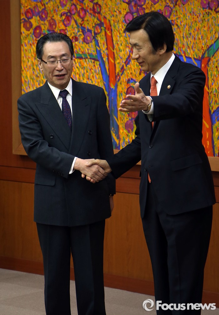 (서울=포커스뉴스) 29일 오후 서울 종로구 세종로 외교부청사에서 윤병세 외교부 장관이 우다웨이 북핵6자회담 중국 측 수석대표에게 자리를 안내하고 있다.