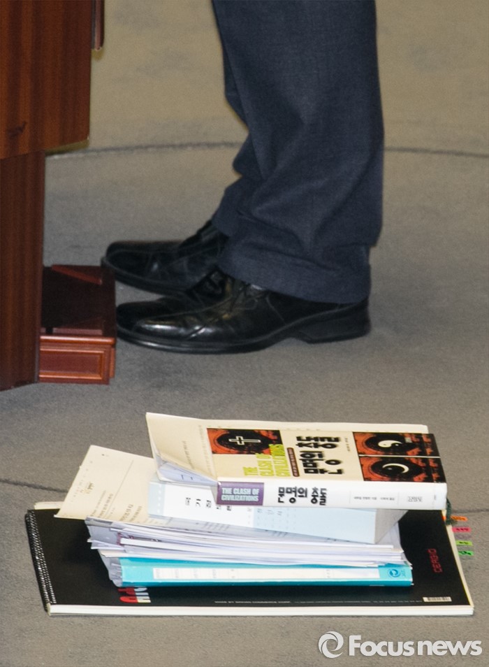 | △ 홍익표 의원 발 밑 자료들 |