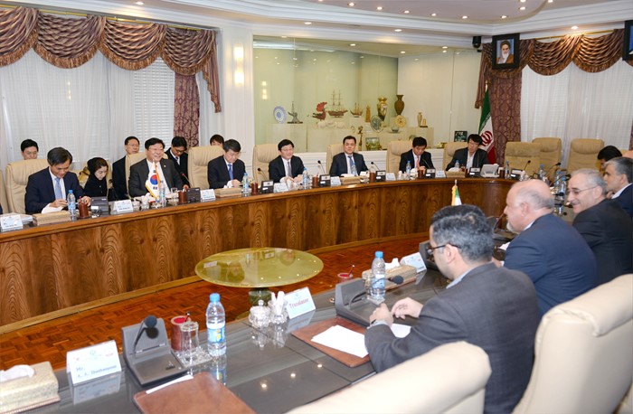 (서울=포커스뉴스) 주형환 산업통상자원부 장관이 29일(현지시간) 이란 석유부장관 집무실에서 비잔 남다르 장가네(Bijan Namdar Zanganeh) 이란 석유부 장관과 면담을 갖고 있다. <사진제공=산업통상자원부>