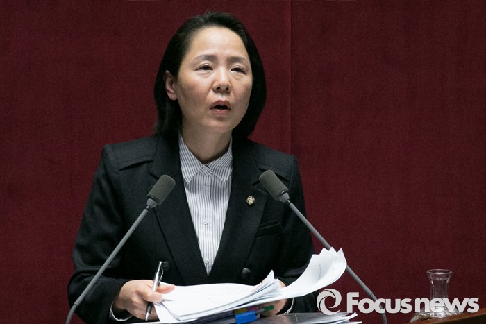(서울=포커스뉴스) 임수경 더불어민주당 의원이 1일 오전 서울 여의도 국회 본회의장에서 무제한 토론(필리버스터)을 하고 있다.
