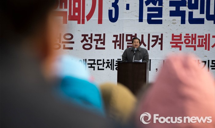 (서울=포커스뉴스) 김무성 새누리당 대표가 1일 오후 서울시청 앞 광장에서 열린 '북핵폐기 삼일절 국민대회 및 구국기도회'에 참석, 발언을 하고 있다.