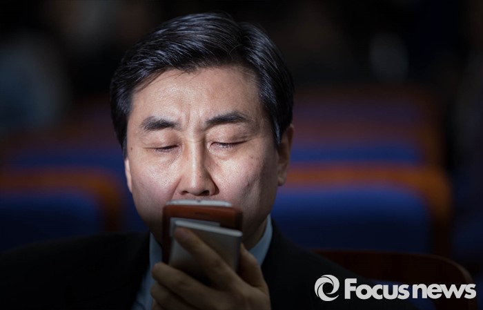 | △ 휴대폰 보며 심각한 이종걸 |