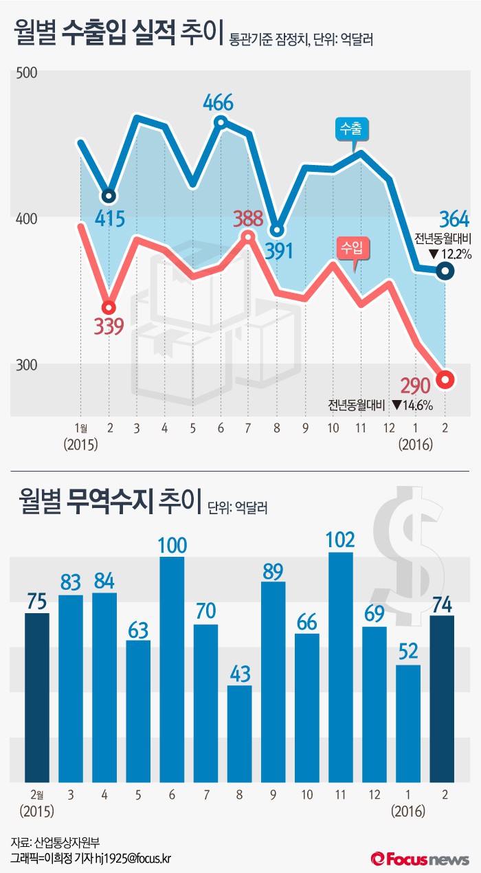 (☞ 2월 수출 12.2%↓, '역대 최장' 14개월 연속 마이너스 성장(종합) - 기사 바로가기)