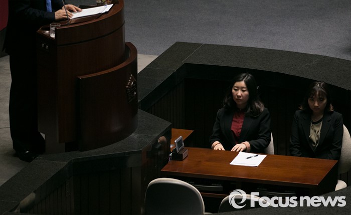 (서울=포커스뉴스) 테러방지법 직권상정에 반발해 야당이 세계 최장 기록의 필리버스터(무제한 토론)를 이어가고 있는 2일 오전 서울 여의도 국회 본회의장에서 속기사들이 토론에 참여한 이종걸 더불어민주당 원내대표가 발언을 기록하고 있다. 야당은 이날 필리버스터를 중단하고 선거법 등을 처리할 예정이다.
