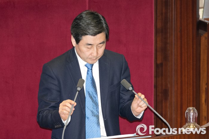 (서울=포커스뉴스) 이종걸 더불어민주당 원내대표가 2일 오전 서울 여의도 국회 본회의장에서 테러방지법 저지를 위한 무제한 토론(필리버스터) 전, 마이크를 만지고 있다.