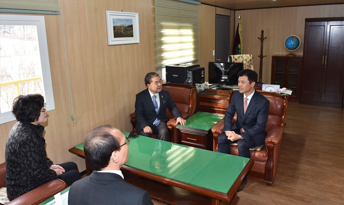 | △ 컨테이너 교장실 방문한 이재정 교육감 |