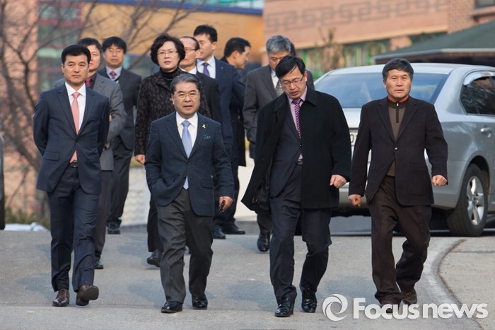 (안산=포커스뉴스) 안산 단원고등학교 개학일인 2일 오전 경기도 안산 단원고등학교에 방문한 이재정(왼쪽 두번째) 경기도교육감이 학교 교육현장 방문을 마친 뒤 학교를 나서고 있다.