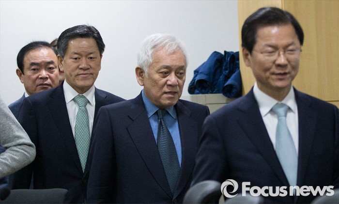 (서울=포커스뉴스) 국민의당 천정배 상임공동대표와 김한길 상임선대위원장을 비롯한 집행부가 2일 오전 서울 여의도 국회 의원회관에서 최고위원회의를 열기위해 회의장을 들어서고 있다.