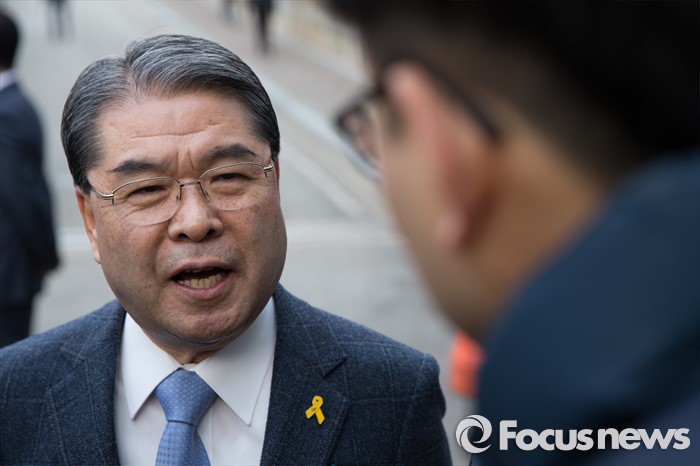 (안산=포커스뉴스) 안산 단원고등학교 개학일인 2일 오전 경기도 안산 단원고등학교에 방문한 이재정 경기도교육감이 학교 교육현장 방문을 마친 뒤 취재진 질문에 답변하고 있다.