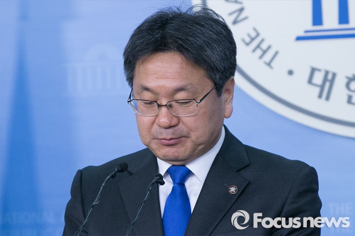 (서울=포커스뉴스) 강기정 더불어민주당 의원이 2일 오전 서울 여의도 국회 정론관에서 거취표명 기자회견 중 생각에 잠겨 있다.