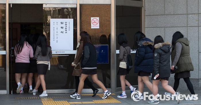 (안산=포커스뉴스) 2일 오전 경기도 안산시 단원구 올림픽기념관에서 열린 단원고등학교 입학식에 학생들이 참석하고 있다.