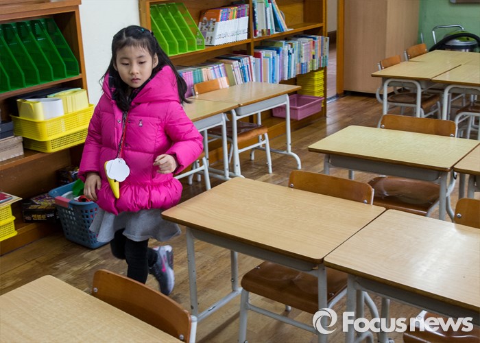 (서울=포커스뉴스) 2일 오전 서울 이태원 초등학교에서 열린 2016학년도 입학식에 참석한 어린이들이 교실을 확인하고 있다.