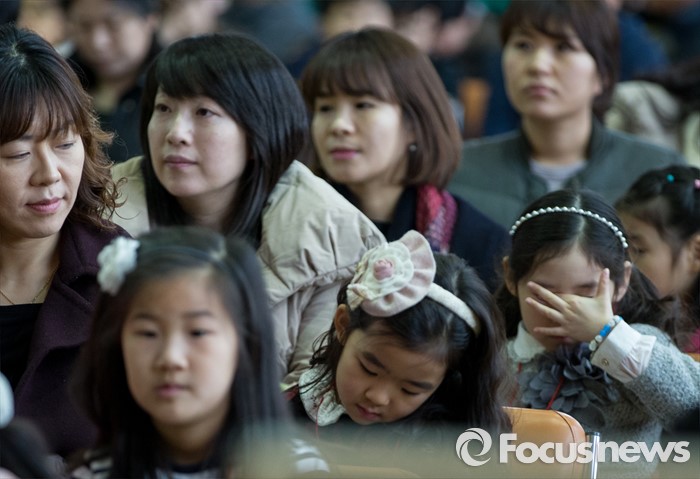 (서울=포커스뉴스) 2일 오전 서울 이태원 초등학교에서 열린 2016학년도 입학식에 참석한 신입생들이 교장 선생님의 인사말을 듣고 있다.