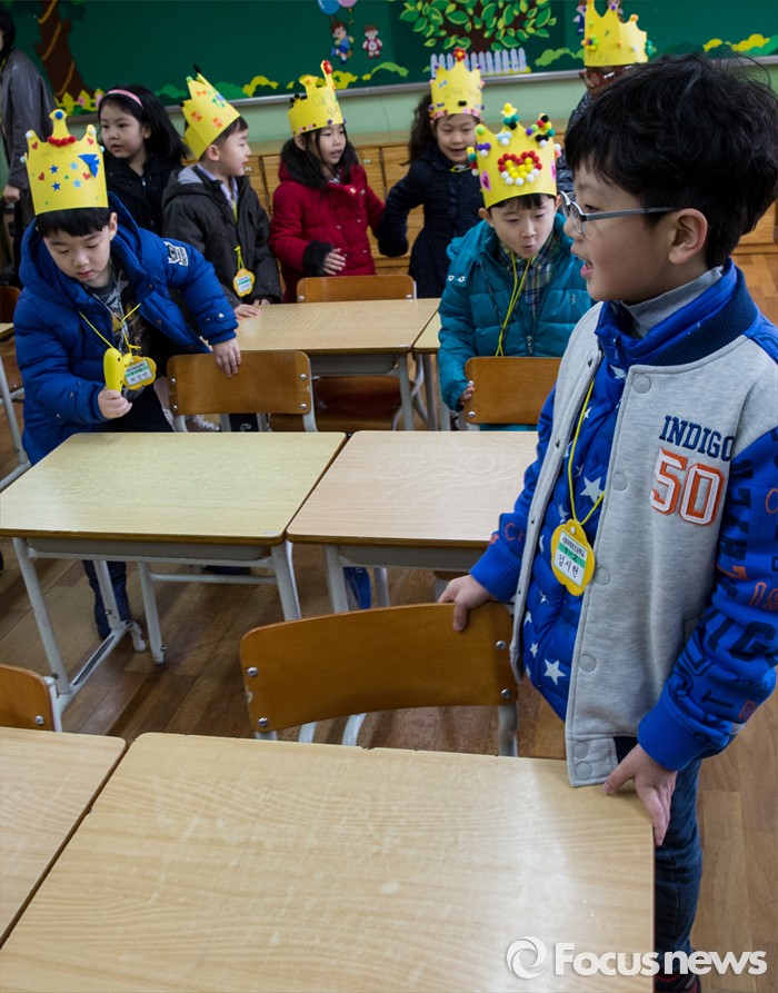 (서울=포커스뉴스) 2일 오전 서울 이태원 초등학교에서 열린 2016학년도 입학식에 참석한 어린이들이 교실을 확인하고 있다.
