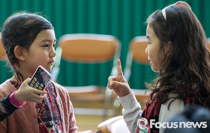 (서울=포커스뉴스) 2일 오전 서울 이태원 초등학교에서 열린 2016학년도 입학식에 참석한 신입생들이 대화하고 있다.