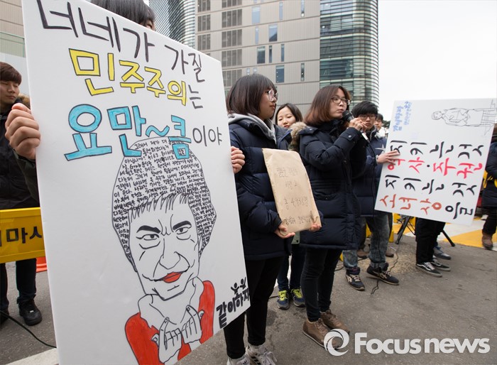 (서울=포커스뉴스) 2일 오후 서울 종로구 옛 주한일본대사관 앞에서 한국정신대문제대책협의회, 학생들을 비롯한 참석자들이 '제1220차 일본군 위안부 문제해결을 위한 정기 수요시위'를 하고 있다.