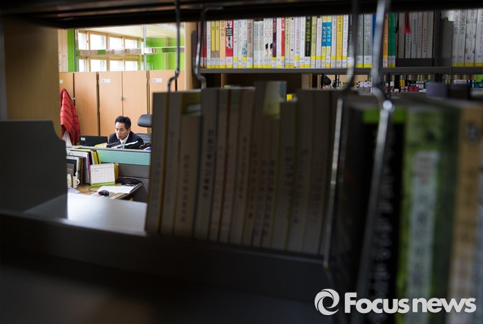 (안산=포커스뉴스) 안산 단원고등학교 교육정상화를 위해 유가족, 재학생 학부모들 간의 교실 존치 논의가 계속되고 있는 2일 오후 경기도 안산시 단원고등학교 도서관에 마련된 교무실에서 교사들이 업무를 보고 있다.