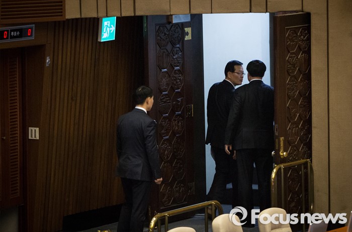 (서울=포커스뉴스) 테러방지법 직권상정에 반발해 야당이 세계 최장 기록의 필리버스터(무제한 토론)를 이어가고 있는 2일 오후, 서울 여의도 국회 본회의장에서 정의화 국회의장이 근무 교대를 한 후 회의장을 빠져 나가고 있다.