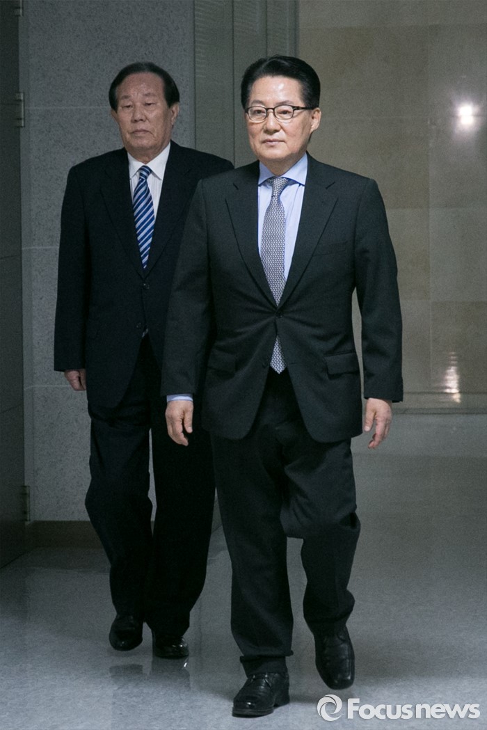 (서울=포커스뉴스) 박지원(오른쪽) 의원이 2일 오후 서울 여의도 국회 의원회관에서 안철수·천정배 국민의당 공동대표와 회동을 위해 집무실로 향하고 있다.