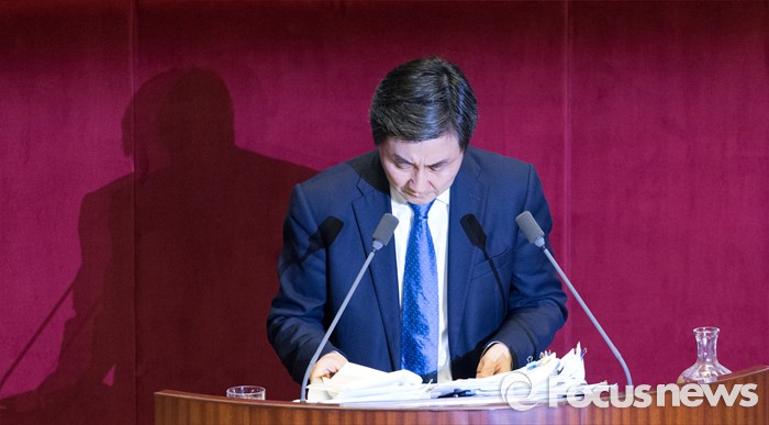 (서울=포커스뉴스) 테러방지법 직권상정에 반발해 야당이 세계 최장 기록의 필리버스터(무제한 토론)를 이어가고 있는 2일 오후 서울 여의도 국회 본회의장에서 토론에 참여한 이종걸 더불어민주당 원내대표가 12시간 31분 발언을 끝으로 무제한 토론을 마치고 있다.