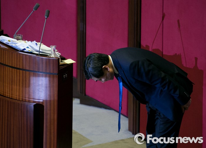 (서울=포커스뉴스) 테러방지법 직권상정에 반발해 야당이 세계 최장 기록의 필리버스터(무제한 토론)를 진행한 2일 오후 서울 여의도 국회 본회의장에서 마지막 주자인 이종걸 더불어민주당 원내대표가 토론을 마친 뒤 인사하고 있다. 마지막 주자로 나선 이 원내대표는 이날 정청래 의원의 기록인 11시간 40분을 경신한 12시간 31분을 기록하며 토론을 마쳤으며, 야당의 필리버스터는 약 193시간만에 종료됐다.