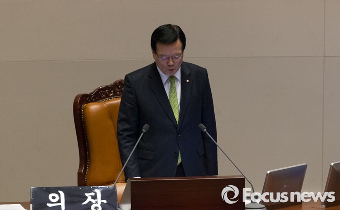 (서울=포커스뉴스) 테러방지법 직권상정에 반발해 야당이 세계 최장 기록의 필리버스터(무제한 토론)를 진행한 2일 오후 서울 여의도 국회 본회의장에서 마지막 주자인 이종걸 더불어민주당 원내대표가 12시간 31분을 끝으로 발언을 마치자 정의화 국회의장이 필리버스터 종료를 선언하고 있다. 마지막 주자로 나선 이 원내대표는 이날 정청래 의원의 기록인 11시간 40분을 경신한 12시간 31분을 기록하며 토론을 마쳤으며, 야당의 필리버스터는 약 193시간만에 종료됐다.