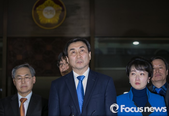 (서울=포커스뉴스) 테러방지법 직권상정에 반발해 야당이 세계 최장 기록의 필리버스터(무제한 토론)를 진행한 2일 오후 서울 여의도 국회에서 마지막 주자로 나섰던 이종걸 더불어민주당 원내대표가 취재진 질문에 답하고 있다. 마지막 주자로 나선 이 원내대표는 이날 정청래 의원의 기록인 11시간 40분을 경신한 12시간 31분을 기록하며 토론을 마쳤으며, 야당의 필리버스터는 약 193시간만에 종료됐다.