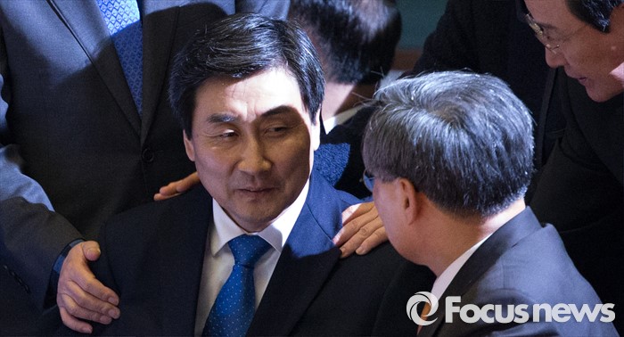 (서울=포커스뉴스) 테러방지법 직권상정에 반발해 야당이 세계 최장 기록의 필리버스터(무제한 토론)를 진행한 2일 오후 서울 여의도 국회 본회의장에서 마지막 주자인 이종걸 더불어민주당 원내대표가 토론을 마친 뒤 동료 의원들과 이야기를 나누고 있다. 마지막 주자로 나선 이 원내대표는 이날 정청래 의원의 기록인 11시간 40분을 경신한 12시간 31분을 기록하며 토론을 마쳤으며, 야당의 필리버스터는 약 193시간만에 종료됐다.