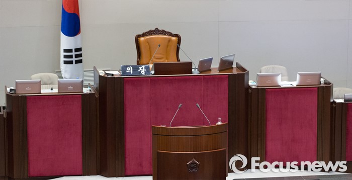(서울=포커스뉴스) 테러방지법 직권상정에 반발해 야당이 세계 최장 기록의 필리버스터(무제한 토론)를 진행한 2일 오후 서울 여의도 국회 본회의장에서 마지막 주자인 이종걸 더불어민주당 원내대표가 12시간 31분을 끝으로 무제한 토론을 마쳤다. 의장석과 단상이 9일 만에 빈자리를 보이고 있다. 마지막 주자로 나선 이 원내대표는 이날 정청래 의원의 기록인 11시간 40분을 경신한 12시간 31분을 기록하며 토론을 마쳤으며, 야당의 필리버스터는 약 193시간만에 종료됐다.