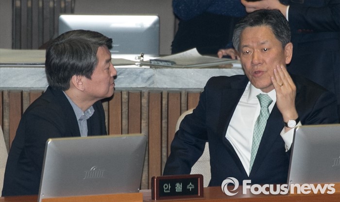 (서울=포커스뉴스) 2일 오후 서울 여의도 국회에서 열린 340회 국회(임시회) 7차 본회의에 참석한 안철수(왼쪽) 국민의당 상임공동대표와 주승용 원내대표와 대화하고 있다.