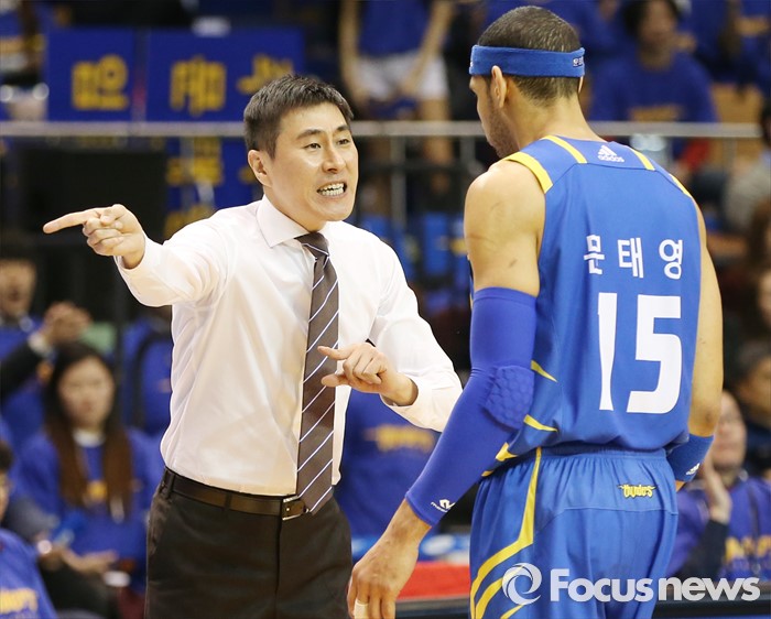 | △ 문태종에게 작전 주문하는 이상민 감독 |