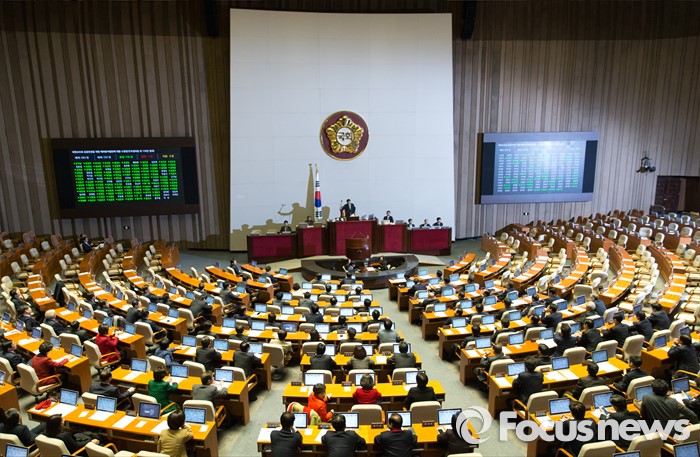 (서울=포커스뉴스) 2일 오후 서울 여의도 국회에서 열린 340회 국회(임시회) 7차 본회의에서 국민보호와 공공안전을 위한 테러방지법안에 대한 수정안(주호영 의원 외 156인 발의)가 재석 157인 중 찬성 156인, 반대 1인으로 통과되고 있다. 야당은 이날 여당의 수정안에 반발해 표결에 참여하지 않은 채 퇴장했다.