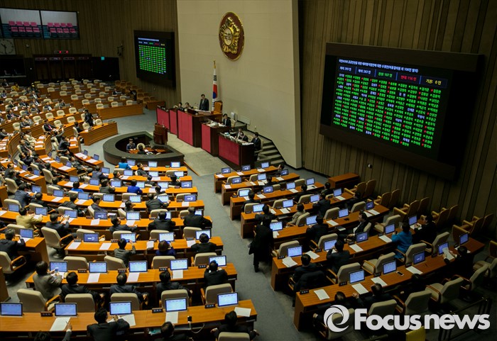 (서울=포커스뉴스) 2일 오후 서울 여의도 국회에서 열린 340회 국회(임시회) 7차 본회의에서 국민보호와 공공안전을 위한 테러방지법안에 대한 수정안(이종걸 의원 외 106인 발의)가 재석 263인, 찬성 107인, 반대 156인으로 부결되고 있다.