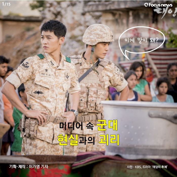 (서울=포커스뉴스) 드라마 ‘태양의 후예’의 인기가 뜨겁습니다. 군인 주인공들의 멋진 모습이 여성 시청자들의 마음을 흔들고 있는데요. 멋있게만 보이는 미디어 속 군대의 모습. 하지만, 현실과는 다른 부분들도 존재합니다. 대체 무엇이 다른 것인지 카드뉴스로 확인해보시죠.