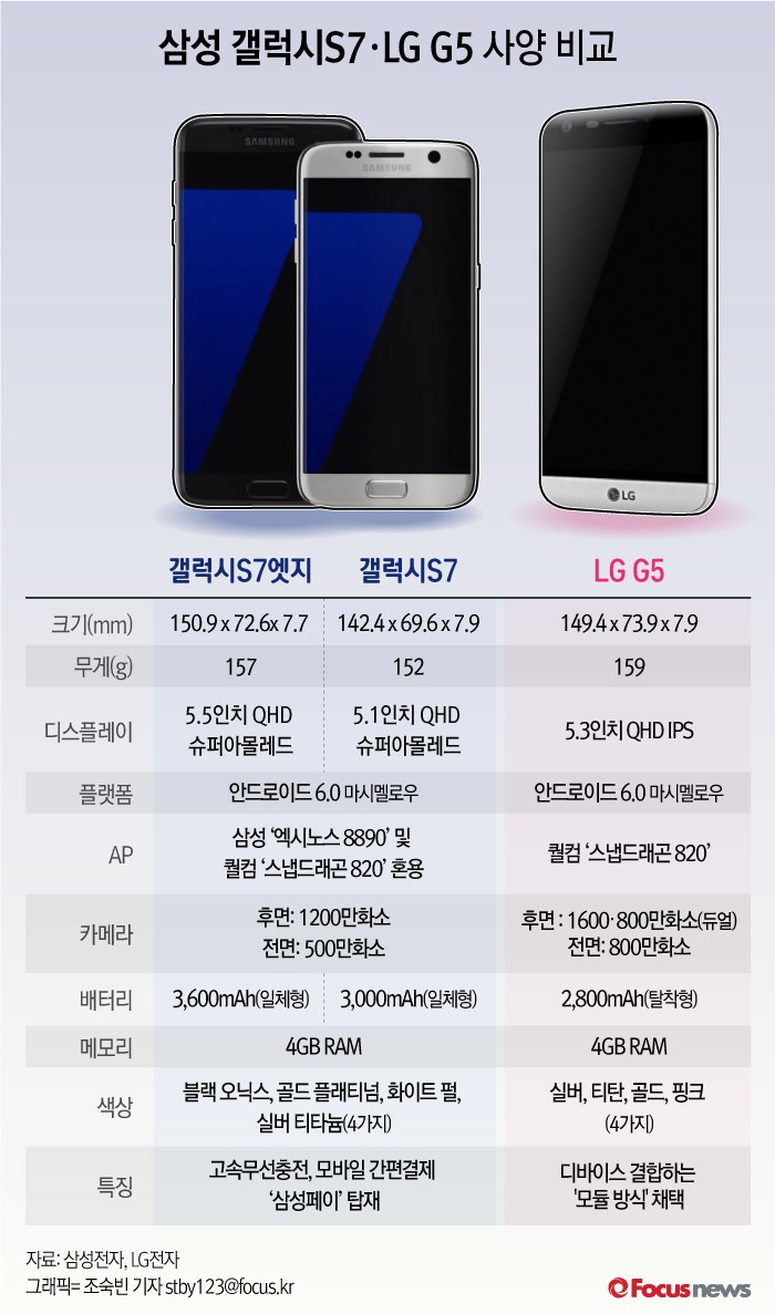 | △ [그래픽] 삼성 갤럭시S7·LG G5 사양 비교 |
