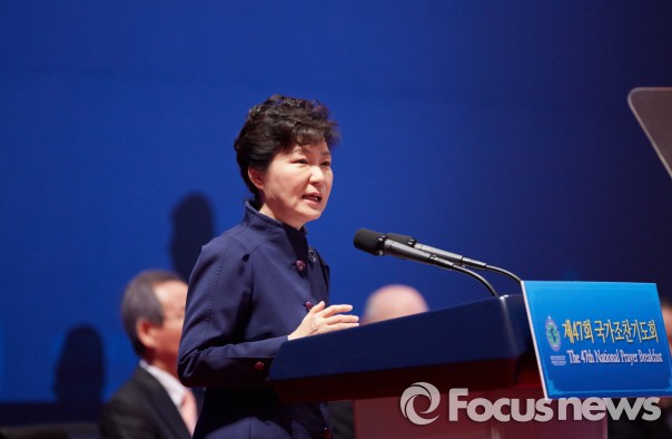 이어 "정부는 북한의 핵 폐기와 한반도의 평화를 위해 이러한 결과를 도출해낸 안보리 이사국들을 비롯한 국제사회의 노력에 사의를 표한다"면서 “국제사회와의 긴밀한 연대를 계속 강화해나갈 것"이라고 말했다.박근혜 대통령이 3일 제48회 국가조찬기도회에 참석해 "정부는 북한 정권이 무모한 핵개발을 포기하고, 북녘 동포들의 자유와 인권을 억압하는 폭정을 중지하도록 전 세계와 협력해 노력해 나갈 것"이라고 강조했다. 사진은 작년에 열린 제47회 국가조찬기도회에 참석한 박 대통령. 2015.03.12. <사진출처=청와대>박근혜 대통령이 3일 제48회 국가조찬기도회에 참석해 "우리 사회·경제를 혁신해서 새로운 도약의 토대를 만들고, 한반도 평화통일이라는 역사적 소명을 이뤄나가는 길에 힘을 보태 달라"고 당부했다. 사진은 작년에 열린 제47회 국가조찬기도회에 참석한 박 대통령. 2015.03.12. <사진출처=청와대>