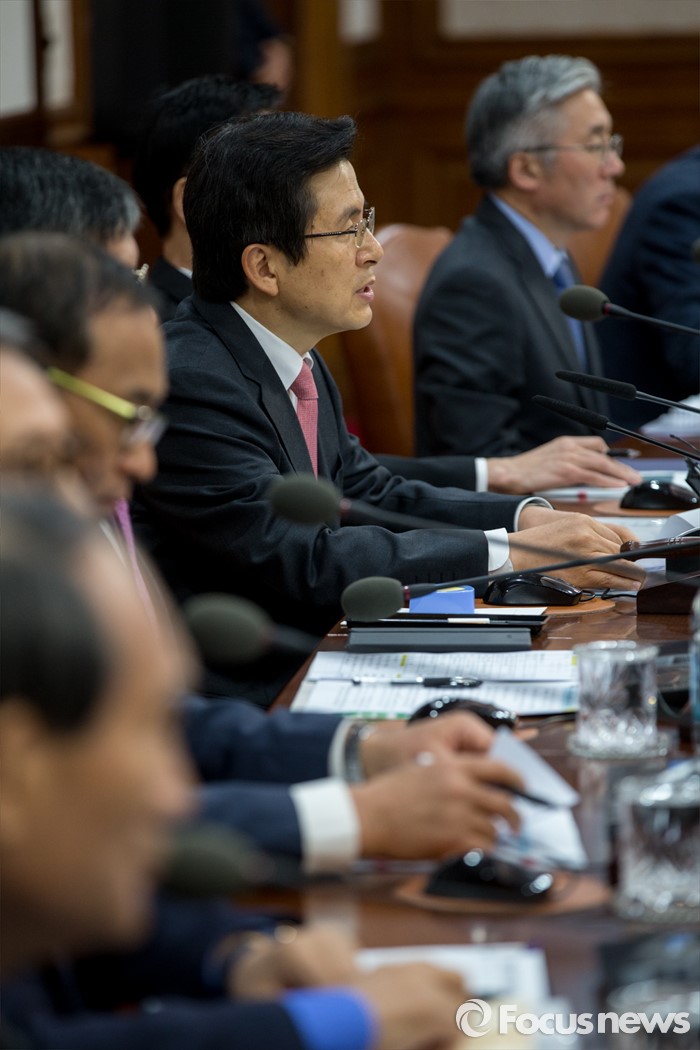 (서울=포커스뉴스) 황교안 국무총리가 3일 오전 서울 종로구 정부서울청사에서 열린 '국무회의'에 자리해 모두발언 하고 있다.