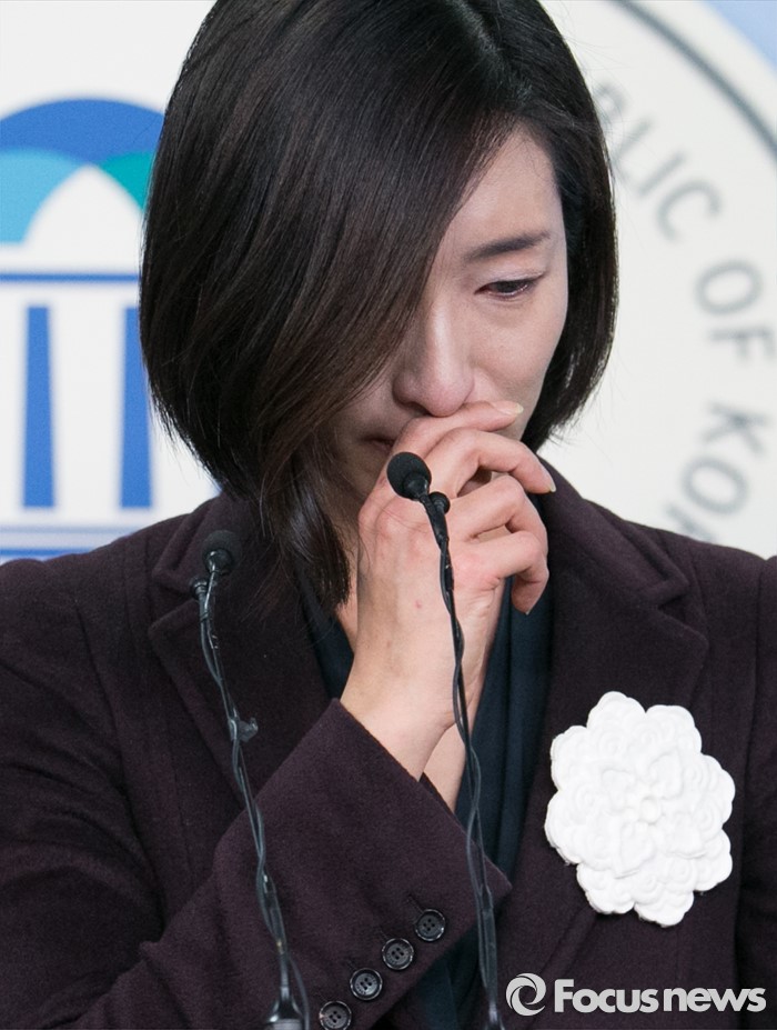 | △ 출마 회견 중 눈물 흘리는 김빈 |
